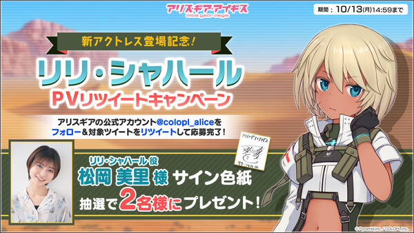 さらに『アリスギア』公式アカウント(@colopl_alice)をフォローの上、対象ツイートをリツイートで応募していただいた方の中から抽選で、豪華賞品をプレゼントいたします。
