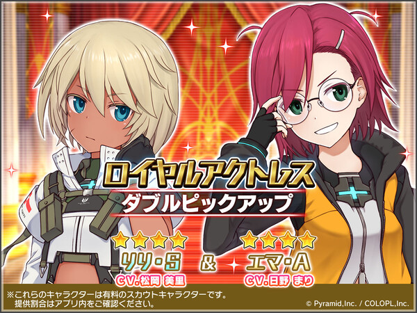 「リリ・シャハール(CV:松岡 美里)」と「エマ・アシュフィールド(CV:日野 まり)」のノーマル★4キャラクターをピックアップしたスカウトが開催中です。