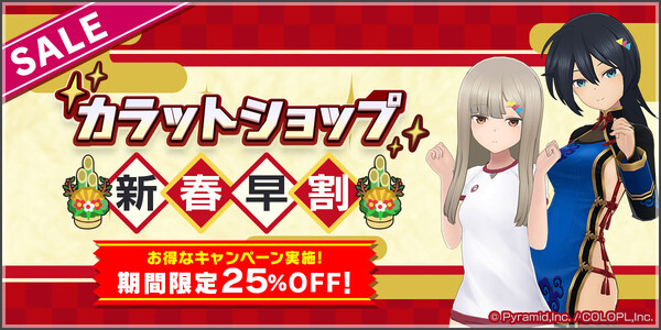 新たに登場したばかりのアクトレス「楽華 明瑠(CV:藍本 あみ)」と「彗聖 紬(CV:豆咲 りお)」の新コスチュームが早割価格で購入できる、カラットショップセールが開催中です。
