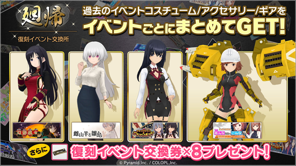過去に開催されたイベントの報酬コスチュームやアクセサリー、ギアをまとめて入手できる、特別な交換所が開催中です。