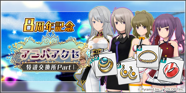 1~4周年までに登場した各種「アニバアクセ」をそれぞれ1個ずつ入手できる、「アニバアクセ特設交換所」が登場!