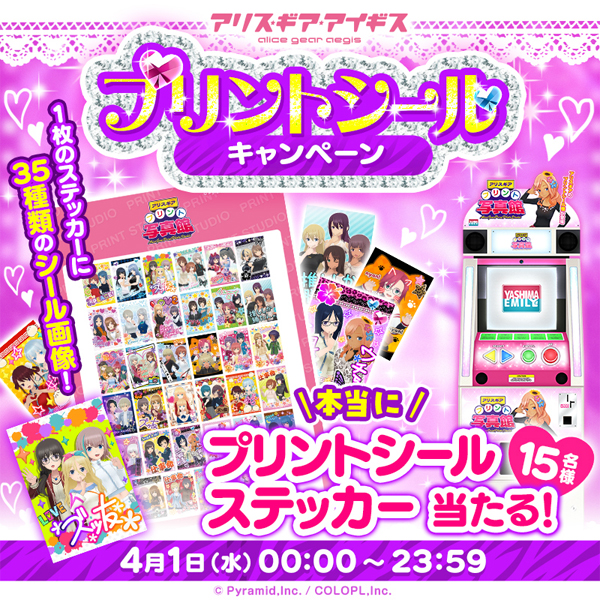 本日2026年4月1日(水)より、『アリス・ギア・アイギス』プリントシール機「アリスギアプリント写真館」の展開が決定しました。