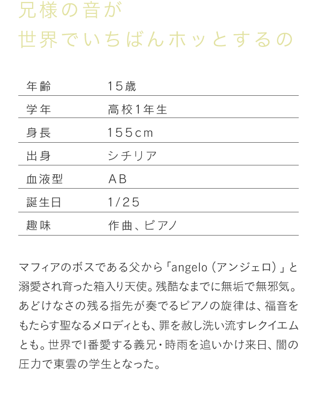親愛なる兄様へ。兄様がシチリアからジャポーネに戻ってしまってから、86回目の夜になりました