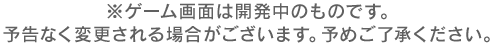 ※ゲーム画面は開発中のものです。予告なく変更される場合がございます。予めご了承ください。