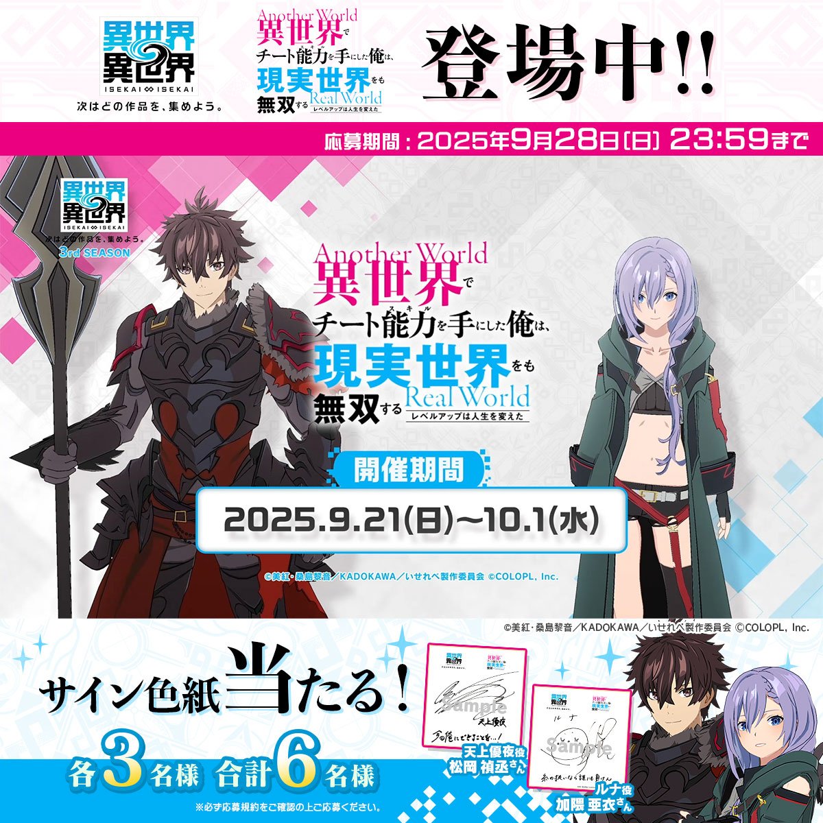 本日2025年9月21日(日)より「3rdシーズン」第3弾として、人気アニメ作品「異世界でチート能力を手にした俺は、現実世界をも無双する ~レベルアップは人生を変えた~」とキャラクターが本作に登場しております。