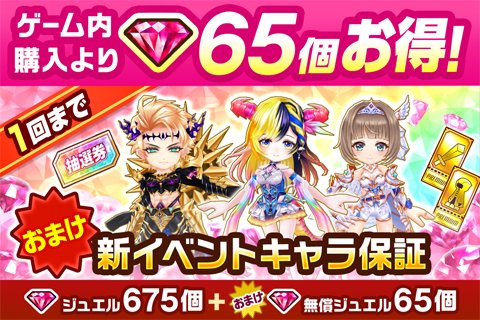 - 「ジュエル」675個、「無償ジュエル」65個、「新イベントキャラ保証」など