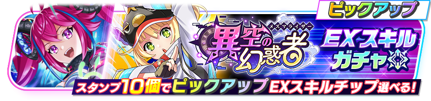ラプラス(CV:鬼頭明里)とソアラ(CV:新井里美)の「EXスキルチップ」がピックアップで登場します。★5は「EXスキルチップ」のみ登場いたします。さらに、次のイベントが開催されるまで、本ガチャが1日1回無料になります。スタンプ1個で「チップジェム」10個、スタンプ5個で★5確定、スタンプ10個で「異空の幻惑者EXスキルチップメダル」が獲得できるなど、ガチャスタンプカードでもらえる報酬が豪華になっております。