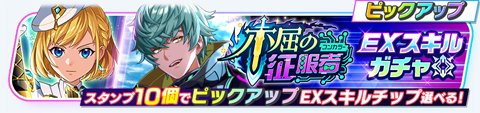 アーサー(CV:秋山絵理)とカルマ(CV:吉野裕行)の「EXスキルチップ」がピックアップで登場します。★5は「EXスキルチップ」のみ登場いたします。さらに、次のイベントが開催されるまで、本ガチャが1日1回無料になります。スタンプ2、7個目で「EXスキルチップジェム」10個、スタンプ5個目で★5確定、スタンプ10個目で「不屈の征服者EXスキルチップメダル」1個が獲得できるなど、ガチャスタンプカードでもらえる報酬が豪華になっております。