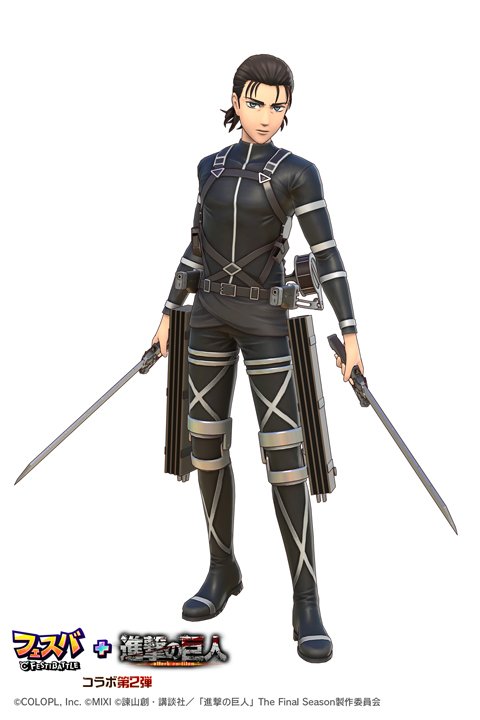 そして、リヴァイ(CV:神谷浩史)や調査兵団兵服の赤髪のヒーロー(CV:梶裕貴)、ラプラス(CV:鬼頭明里)が登場する第1弾コラボの復刻ガチャも同時に開催し、コラボステージ「進撃の巨人:孤島の街」も再登場します。『進撃の巨人』のキャラクターが参戦している『フェスバ+』をお楽しみください。