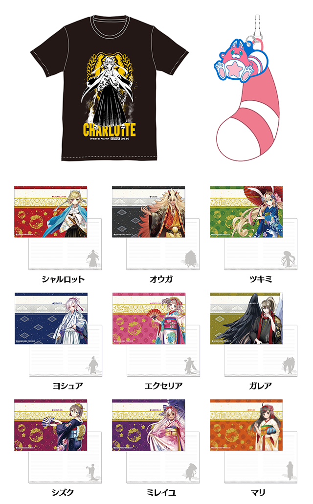 グッズに「Tシャツ」「イヤホンジャック」「ノート」を追加致します! <Tシャツ(M、L)> シャルロット ※6/17(金)からの販売開始となります。 <イヤホンジャック> 星たぬき ※6/24(金)からの販売開始となります。 <ノート> シャルロット、オウガ、ツキミ、ヨシュア、エクセリア、ガレア、シズク、ミレイユ、マリ ※6/17(金)からの販売開始となります。 この機会にぜひご来場くださいませ。